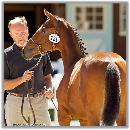 "Frankie is a stunning colt by Premium Hanoverian Sinatra Song of the famous Sandro Hit line -- Reserve Champion & highest scoring Hanoverian in the 2006 Bundeschampionat, Winner Stallions Under Saddle Dressage at Devon 2009; out of the DH Danish Warmblood mare Legate--Winner Broodmare Class Dressage at Devon 2004 and producer of champion and ribbon winning offspring at breed shows and under saddle."!